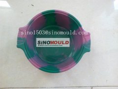 This kinds of mould has two different cavities and two same cores, the double color injection machine will revolve the injection moulds by a turning plate. After first injection, the moving plate of moulds will turn 180°over then the different colored material will be injected into the other mould cavity, then we can get the cleared double color parts.